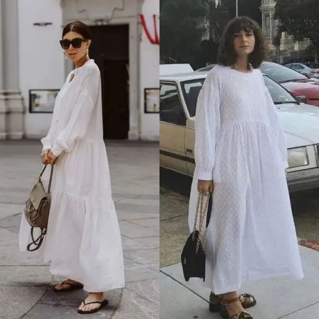 那很多人就会想到长裙了,但这对于矮个子的女生来说,长度盖过脚面的裙子,感觉整个人就像是被装进了水桶里,太显矮了!!