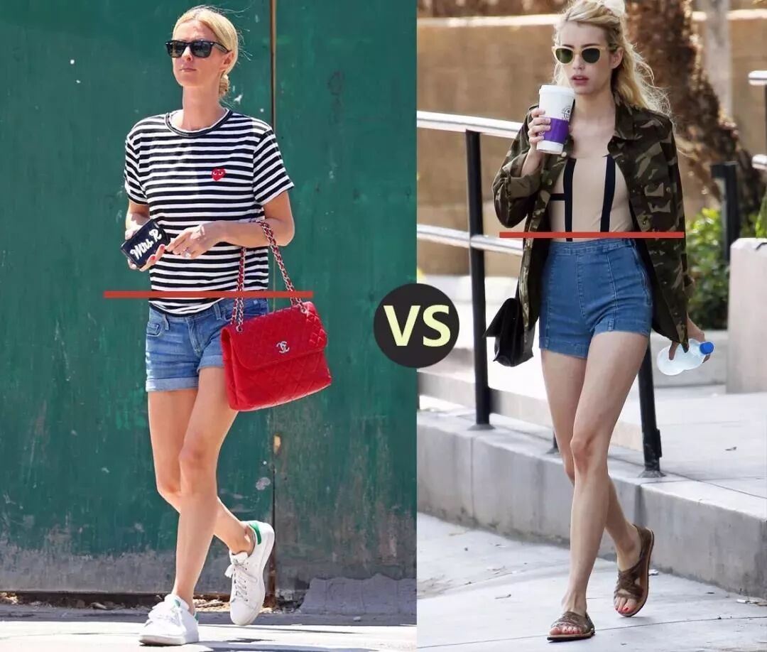 即使不是小个子,再超模的身材,穿上中低腰的短裤都会立刻变成五五分的比例!