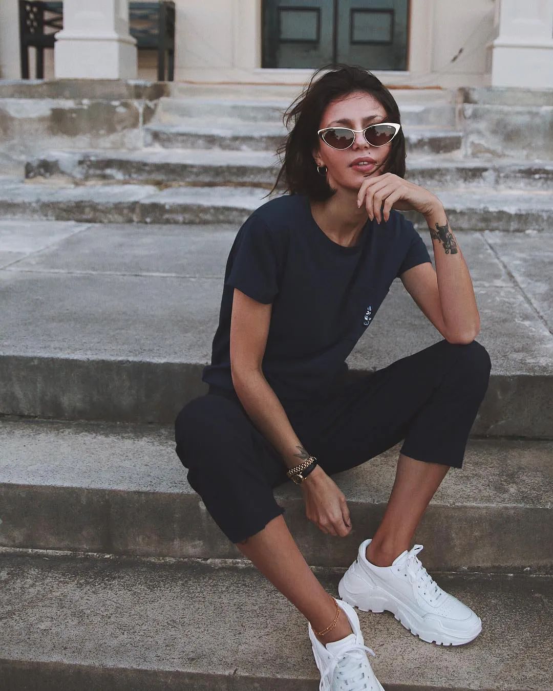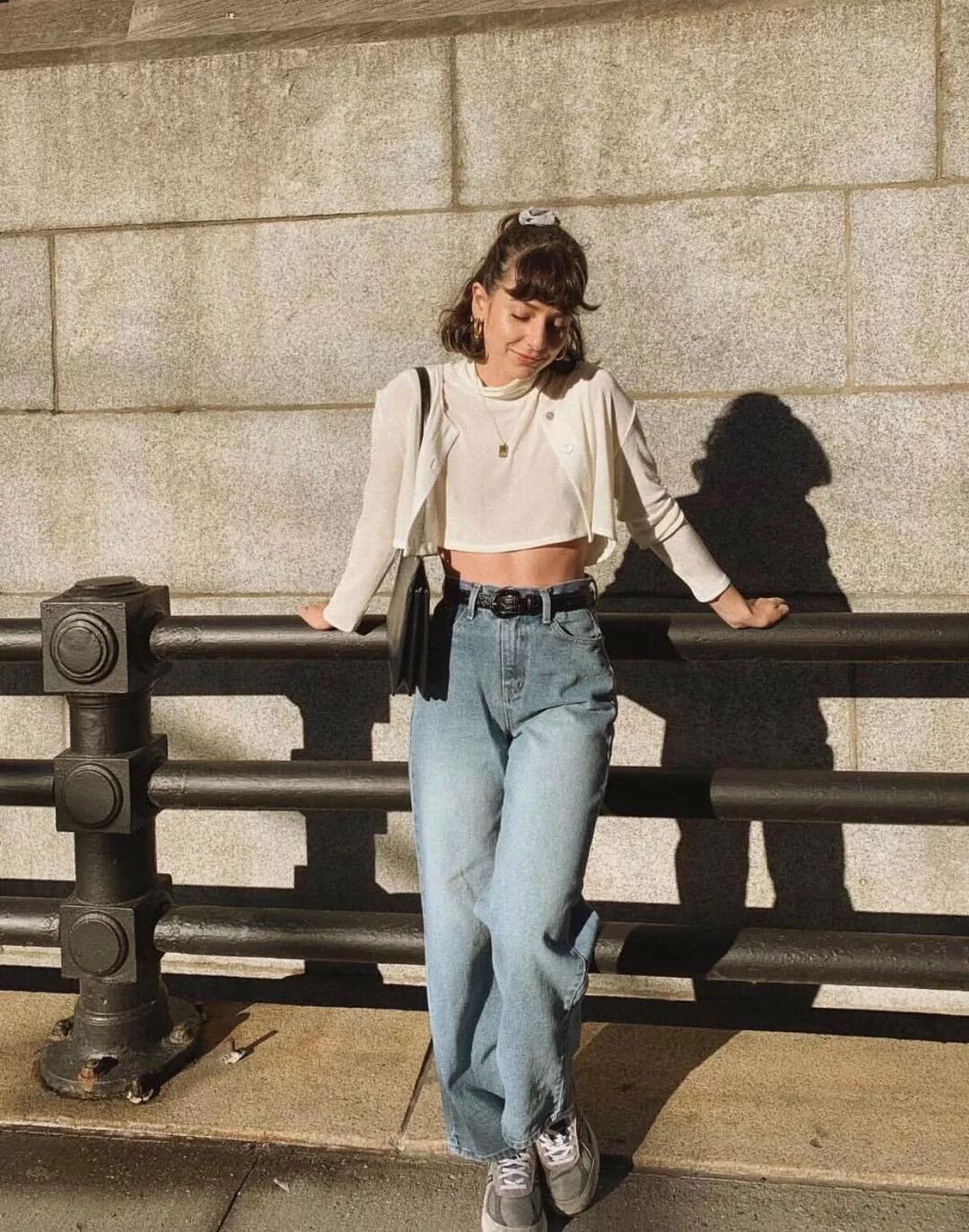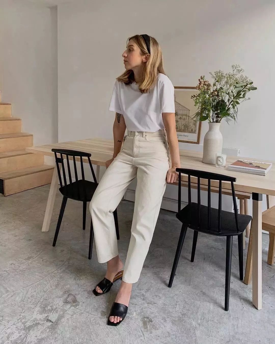 论百搭的话,深色(浅色容易显胖)款的9分牛仔裤基本上是无雷区,轻轻松松时髦说的就是这种搭配~