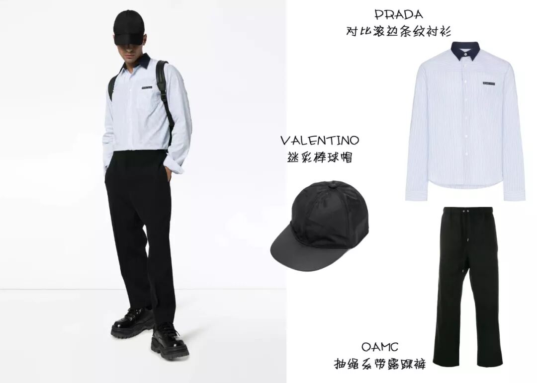 深色系的衬衫这时候搭配宽松的九分裤和小白鞋,就是标准的阳光学长既视感。或者简单的搭配深色牛仔裤,卷起裤腿露出脚脖,一双小白鞋上下呼应,夏季中选择一款适合自己的墨镜,完美出街。