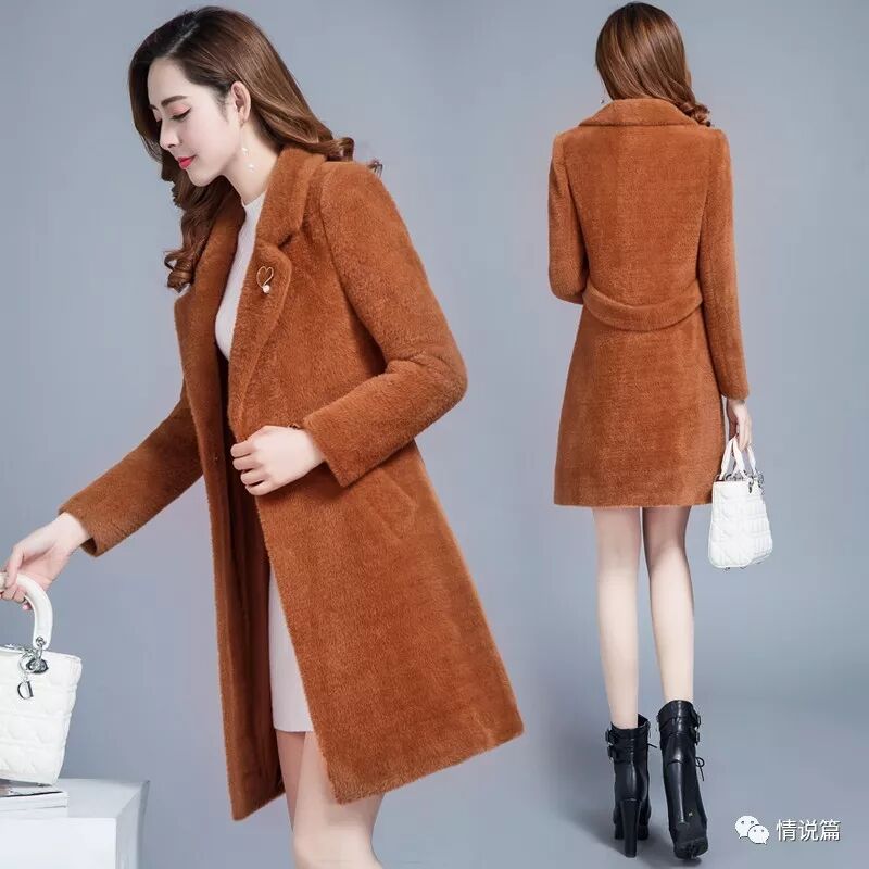 仿水貂毛衣材质,非常大气,经典百搭的设计超有气场,简单的无扣设计,很划算的一款,精致保暖。