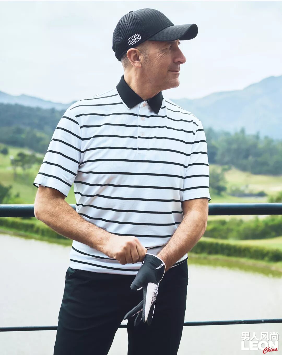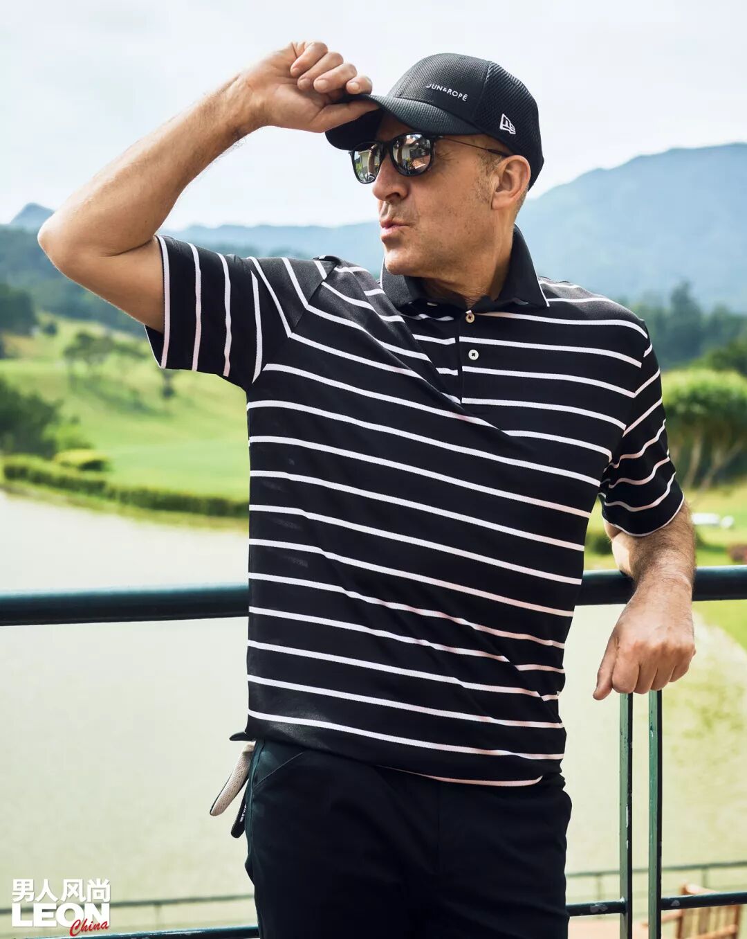 高尔夫球场上,会更多地展现背影。此时,金属 LOGO 扣带的帽子,就是你最强大的武器。推荐帽檐部分的固定皮革,也选择带有品牌标志的款式。