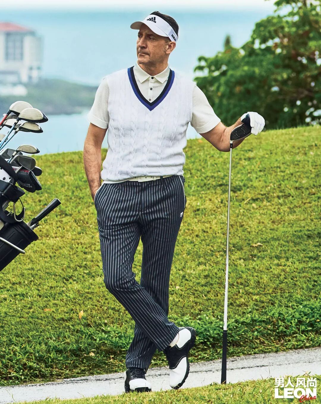 背心 约849元 / FIDRA、POLO衫 约970元 / St Andrews、 裤子 约1576元 / MASTER BUNNY EDITION、 腰带 约473元、 手套 约133元 / New Balance、鞋 价格店洽 / TOUR B、遮阳帽 约199元 / adidas golf、 一号远距离球杆 约4969元 / TaylorMade、 球包 价格店洽 / 均为 RLXGOLF