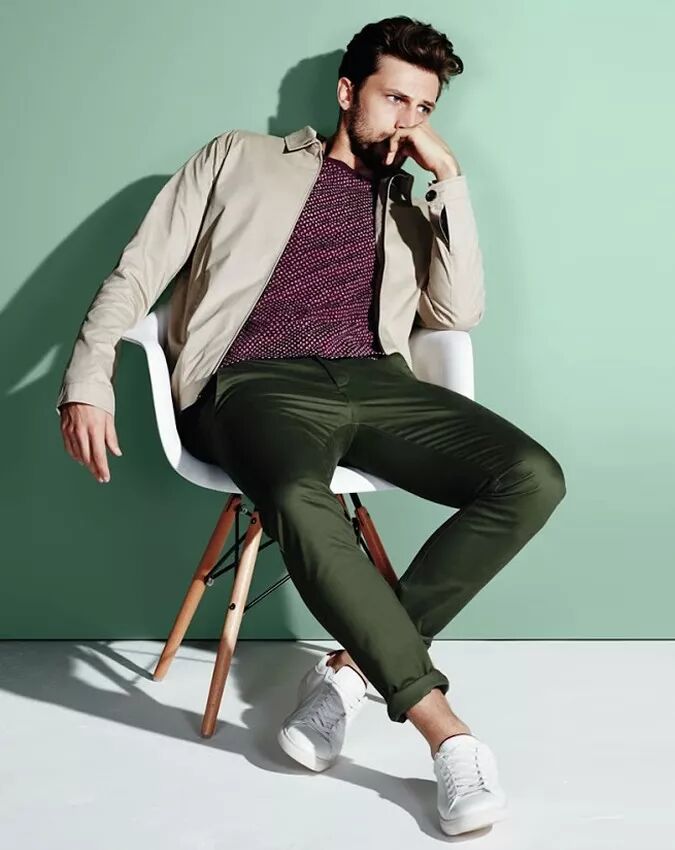 搭配运动鞋更加适合周末的休闲出行,哈灵顿夹克保证了你的男人味,而运动鞋让你的双脚更加舒适。