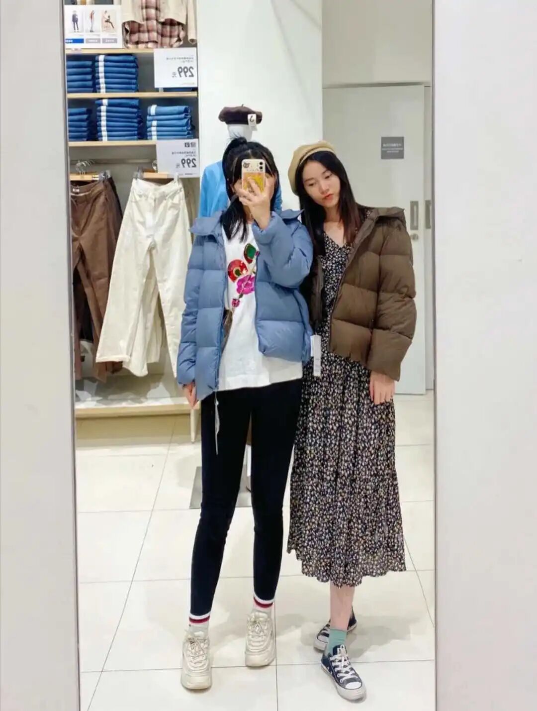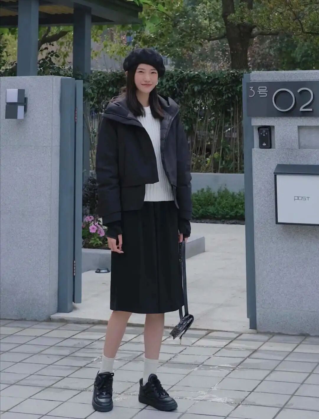 look5 羽绒服+开衫+打底短袖+半身裙+板鞋