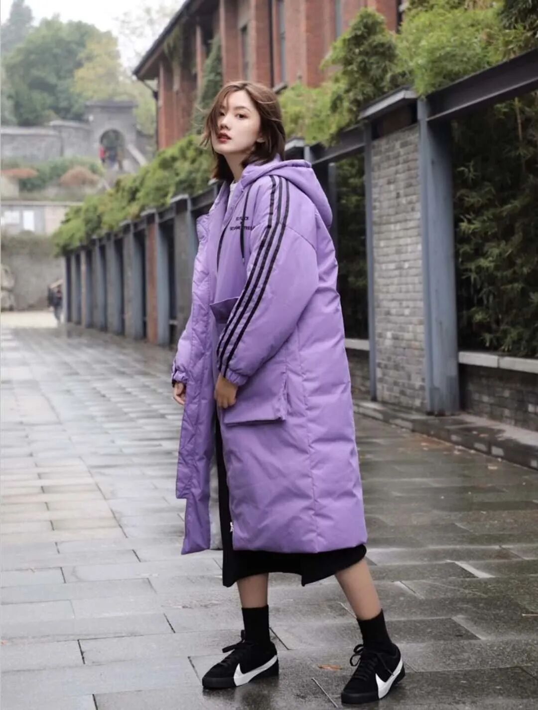 这套是羽绒服的叠穿大法了,整体搭配起来就是酷女孩本人啦外套:芝麻街中长款羽绒服,羽绒服是今年很流行的紫色!它的设计很时尚也很运动风,上身超酷的感觉,而且背后有喜欢的芝麻街图案。这款羽绒服完全不挑身材,高矮胖瘦都适合哒。