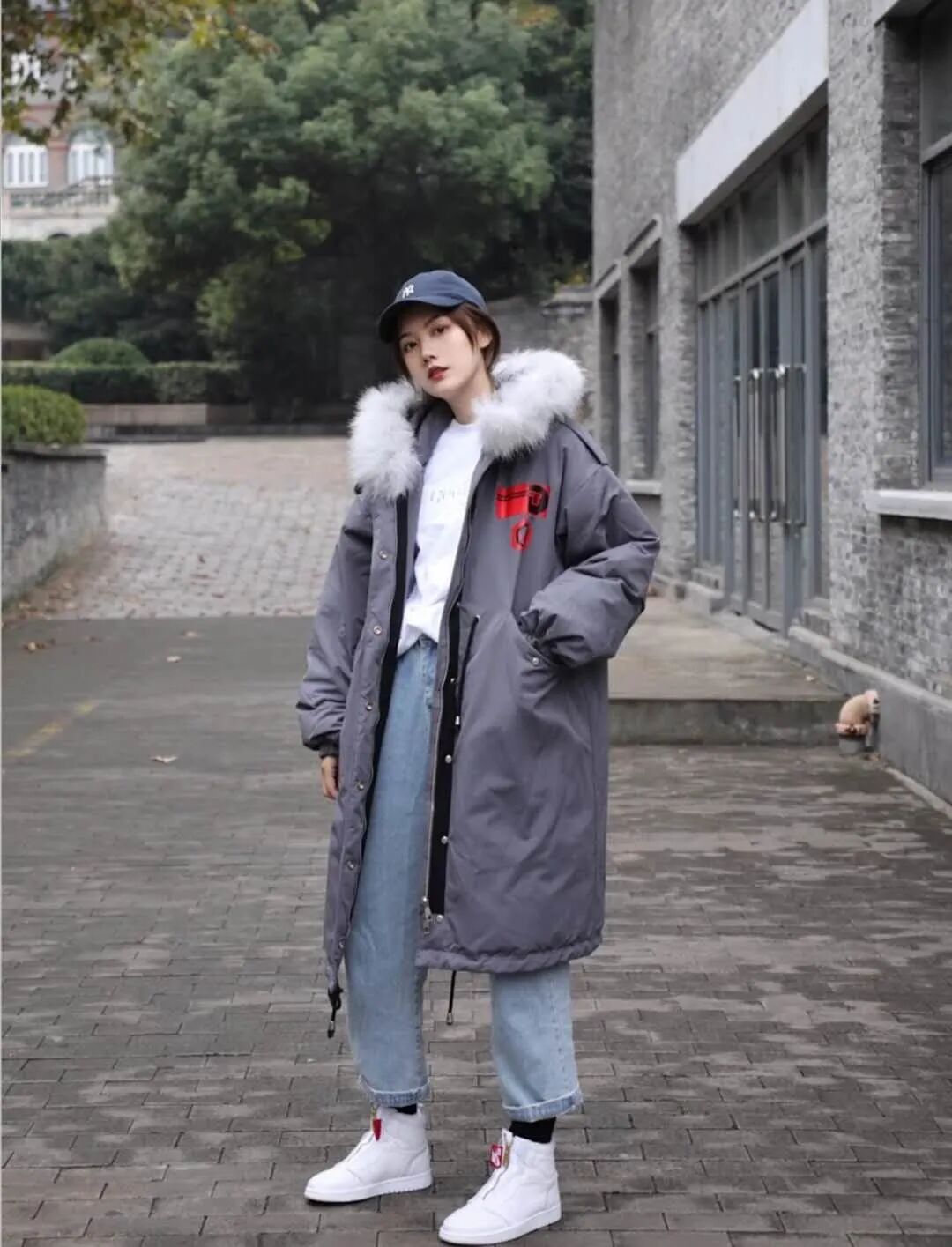 look4 中长款羽绒服+卫衣+高腰牛仔裤+球鞋