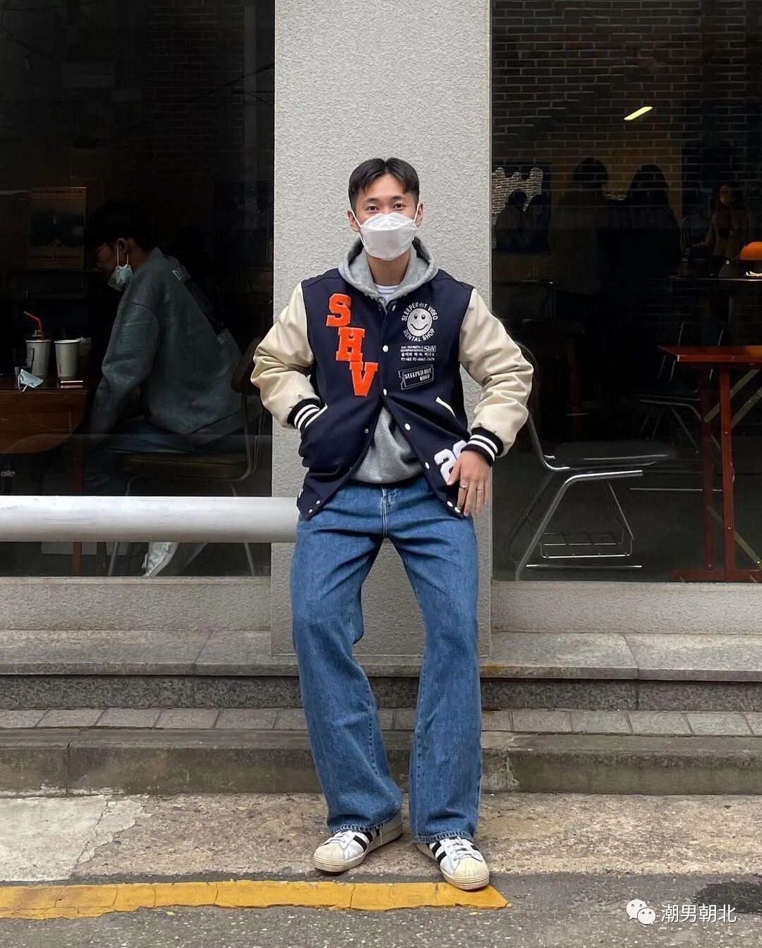 搭配示范:连帽卫衣+撞色棒球服+蓝色牛仔裤。卫衣的帽子相当于领子,高于棒球服的圆领,由外而内的包裹感,让整个人在视觉上特别显高显瘦。