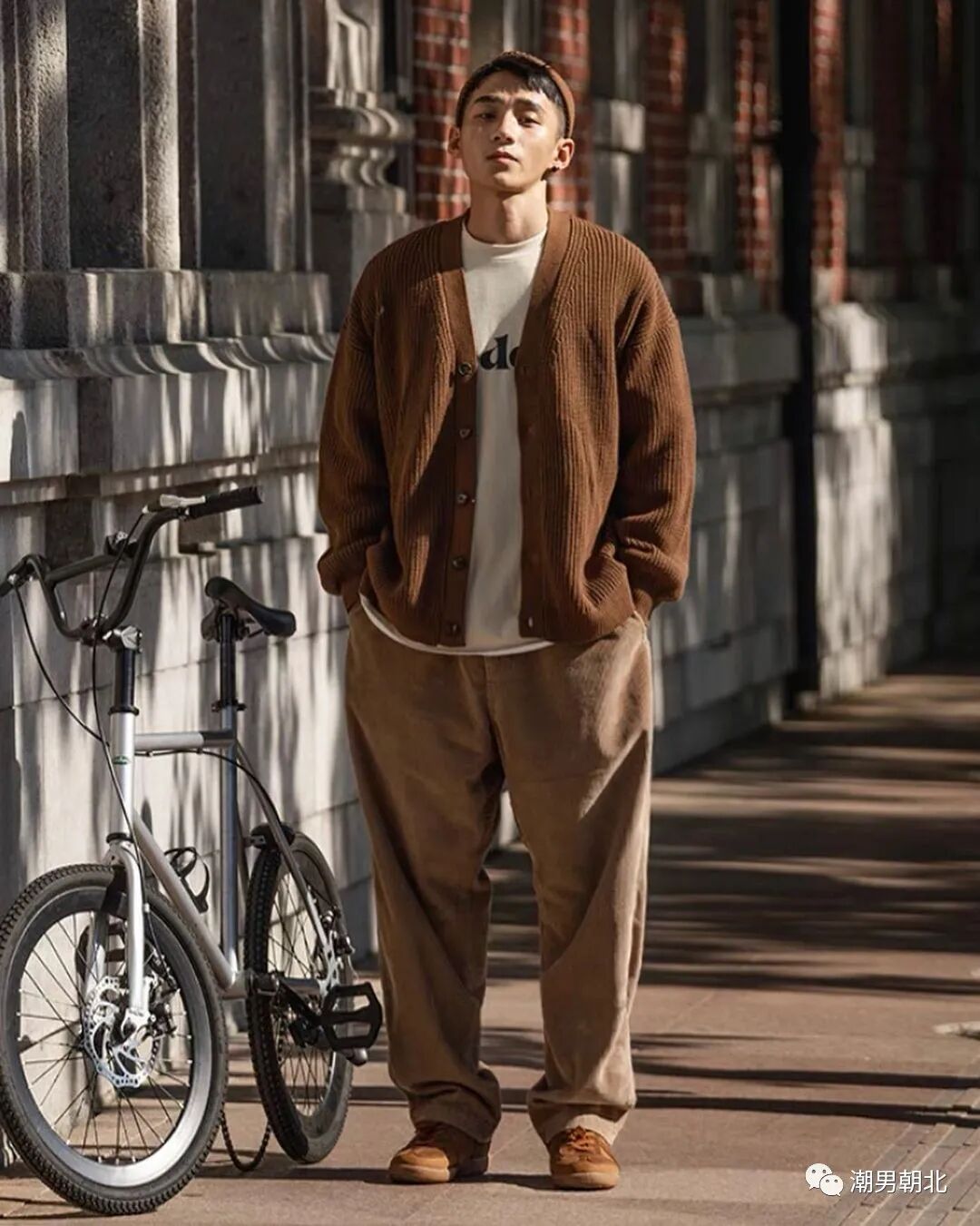 搭配示范:白色圆领卫衣+驼色V领开衫+驼色休闲裤。圆领卫衣搭配V领开衫,让整个穿搭效果显得很协调。如果内外都选择V领,那么套搭配就满满的锐感,看起来特别不舒服。