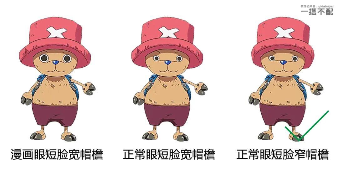 帽沿过宽会显得脸更短,效果参考乔巴