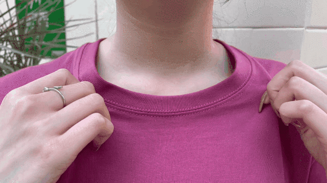 还有个加分的小细节就是,因为采用了优质重磅精梳棉,在强光的照射下,T恤也更不易透肉,安心穿不尴尬。