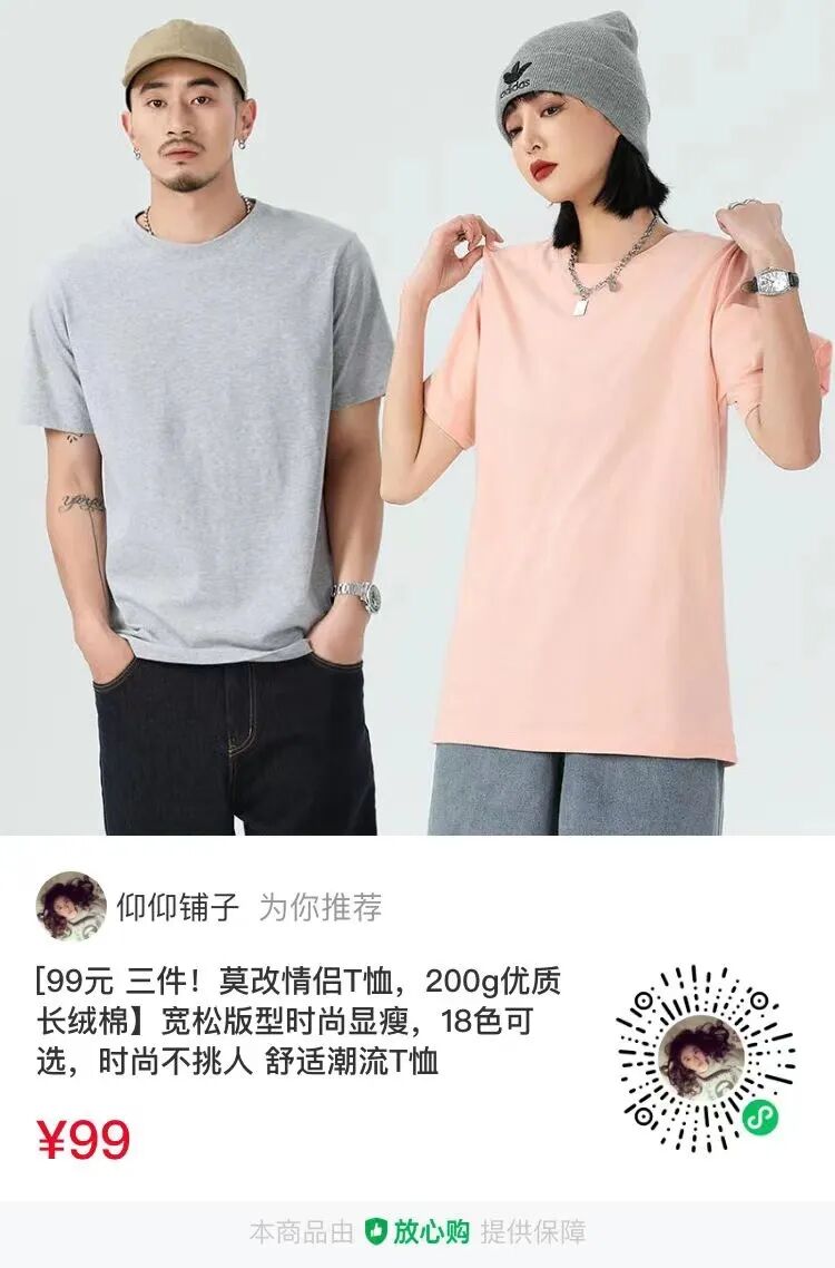 性价比也很高,精梳棉T恤,三件仅需99元,18种颜色,S-4XL,共7个尺码,全家都能穿。