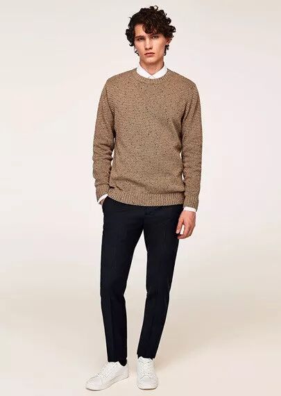 男士针织衫搭配:针织衫内搭衬衫是最常见的,可以将衬衫领藏在毛衣内,也可以放到毛衣外。还可以搭配T恤。裤子一般选择休闲裤、牛仔裤、休闲西裤。鞋子一般都选休闲类的鞋,休闲皮鞋、休闲鞋、运动鞋、板鞋...颜色一般选黑色、棕色、白色。