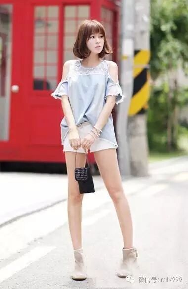 白色露肩T恤搭配黑色高腰短裤能把腿部线条拉长,显得更加完美,下身搭配了一双高帮平底凉鞋,休闲朋克风,显腰身纤细,修长。酷劲十足!