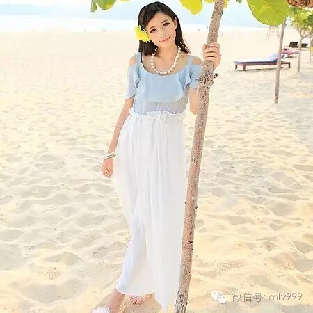 小清新的露肩连衣裙,荷叶边与露肩元素展现了甜美时尚的小女生性感,这样的打扮很适合到海边旅游穿呢,有种女神的风采,甜美又能遮盖小粗腿哦。