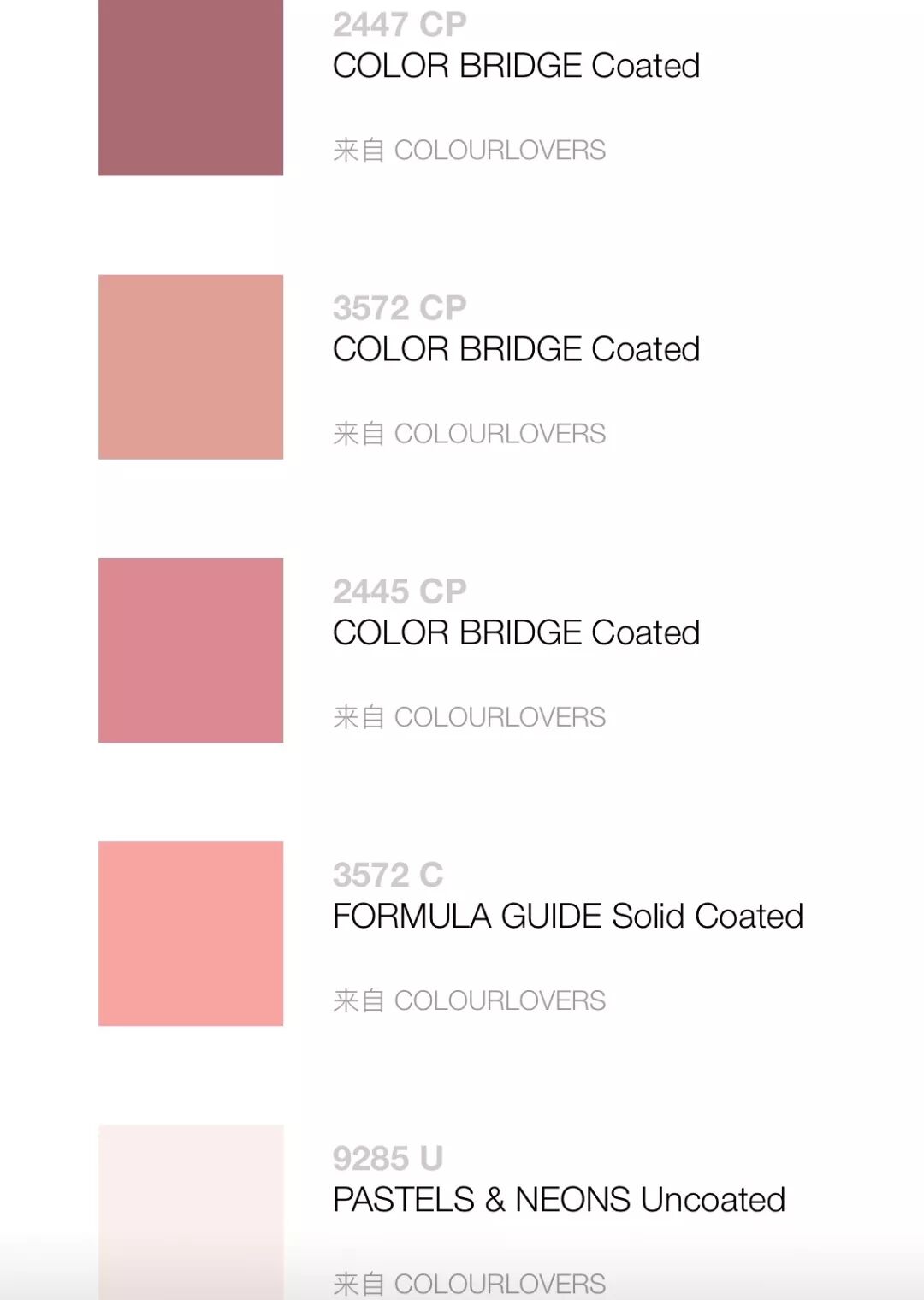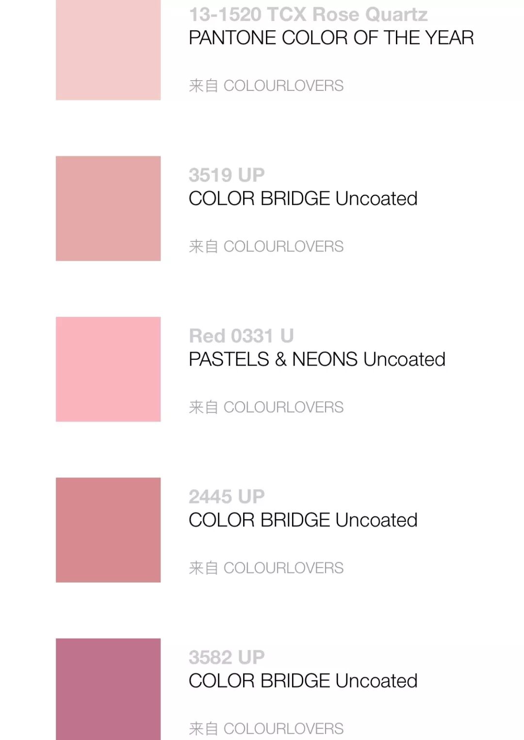 在Pantone寻找粉色,会相应出现上百种粉色。
