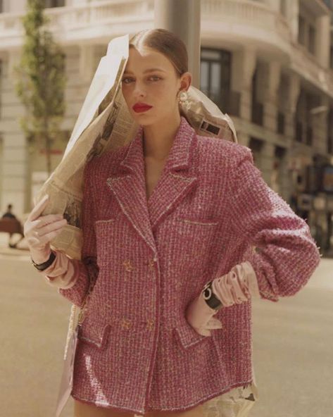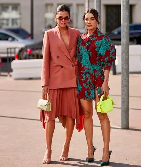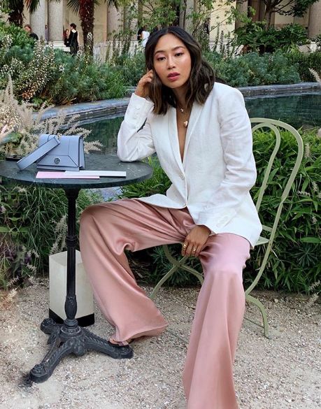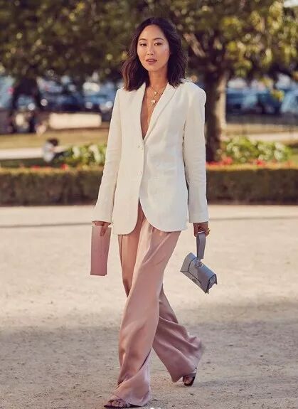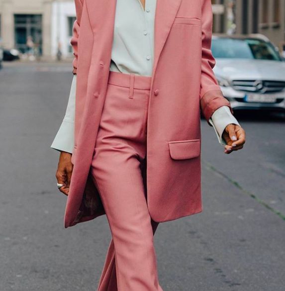面料上要么硬挺有型,要么飘逸有垂坠感,才会让粉色更加高级耐看。