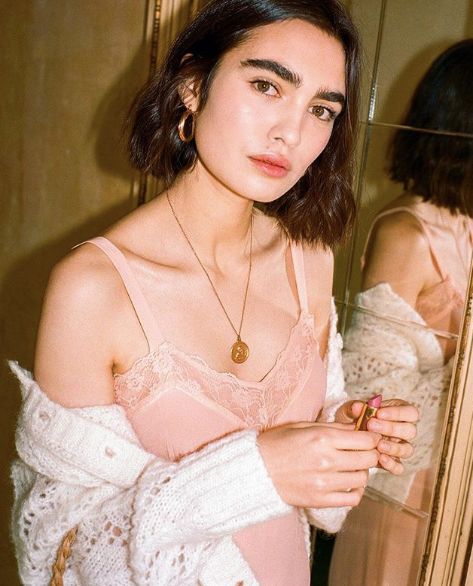 这个粉色调非常有质感,低饱和度粉色很显气质。柔情浪漫的感觉,而且不是很白的人也不用担心。
