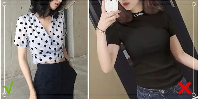 许多女性为了显腿长,会很注重高腰线,这样确实能拉长下半身。但是,高腰线并不太适合头大的女生,否则从视觉上看起来会让上半身比例缩短,从而头部的占据比例也会变大,这样一来就把头部的大小更衬托出来了。对于头大的女生来说,腰线适当就好,建议腰线不要超过肚脐眼,在肚脐眼范围内就好。不过,如果你的上衣不仅能加宽肩部,同时也露出了肩颈线条,那么腰线高一些还是可以的。