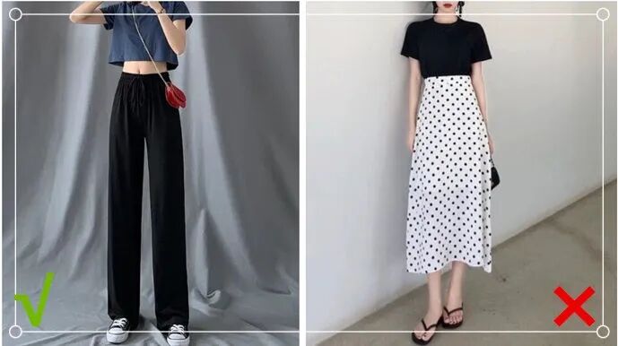 头大的女生从视觉上就给人头重脚轻的感觉了,所以穿搭方面需要十分注意,除了上半身以外,下身也十分重要,别让下身太“瘦”。下身别太“瘦”的意思就是,下半身不要选择颜色太深太紧身的衣服,例如黑色紧身裤。头大的女生穿这种裤子,只会从视觉上把头大的缺点暴露出来。建议选择大裙摆的裙子,A字裙和阔腿裤等服装。