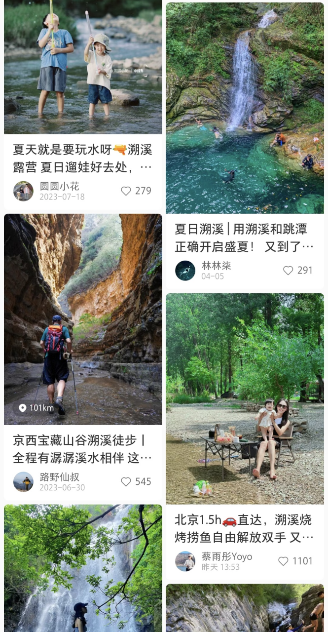 山合海俱乐部根据报名者的身体条件和适应能力,设置了专业与非专业线路,非专业路线一般选在城市周边,相对比较休闲,以低难度的徒步、淌水结合多种普通户外活动为主。而专业的或者称进阶版的溯溪,则不局限于 “淌水而行”,会在极富难度与挑战的原始森林线路,进行攀爬、绳索攀岩、瀑降等挑战难度大的项目。“溯溪的魅力不仅在于探索自然,更重要的是体验到团队间集体协作配合、互帮互助的氛围感。”白辰对懒熊体育说,溯溪当中具有一定技术难度的项目需要在专业人员指导下才能进行,这也使得溯溪俱乐部实现了突围。除此之外,溯溪在以往露营的基础上,更加深入带动了“山系户外”的风格穿搭。比如溯溪直接带动了溯溪鞋的热卖,在小红书上随便搜溯溪鞋就有看到铺天盖地的笔记。因为普通凉鞋、拖鞋甚至防水的跑鞋都会因为遇水后的舒适性和防滑性等功能的欠缺,而不适用于溯溪。而既能透气、透水又适合运动,同时适合多种不同环境的溯溪鞋满足了人们的需求,以至于成为很多非溯溪玩家、只是单纯的露营玩家或是城市上班族的日常选品,一种可以姑且称为“运动凉鞋”的风潮。更长的清单:难度和风险