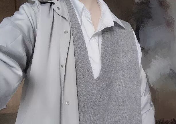 tips:“这种搭配很暖和,适合没有凛冽寒风的冬天。从里到外的四件衣服分别是秋衣、衬衫、毛衣、皮衣。穿毛衣的男生给人一种居家、温柔的感觉,皮衣的话也可以尝试黑色的皮衣,以我以前的经验来说男生穿着也会很帅。”
