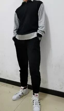 “这是一套偏运动风的打扮。卫衣+运动裤如何搭配的不土气,颜色是很重要的一个影响因素,可以像图片中一样选择撞色的卫衣单品,也可以选择全身的黑色套装(我就特别喜欢这么穿)。第二张图是在在这个基础上加了一件很暖和的长外套,不光看着就给人一种很温暖的感觉,在寒冬腊月里也能温暖自己和别人(你看这怀里多适合加入一个妹纸)”