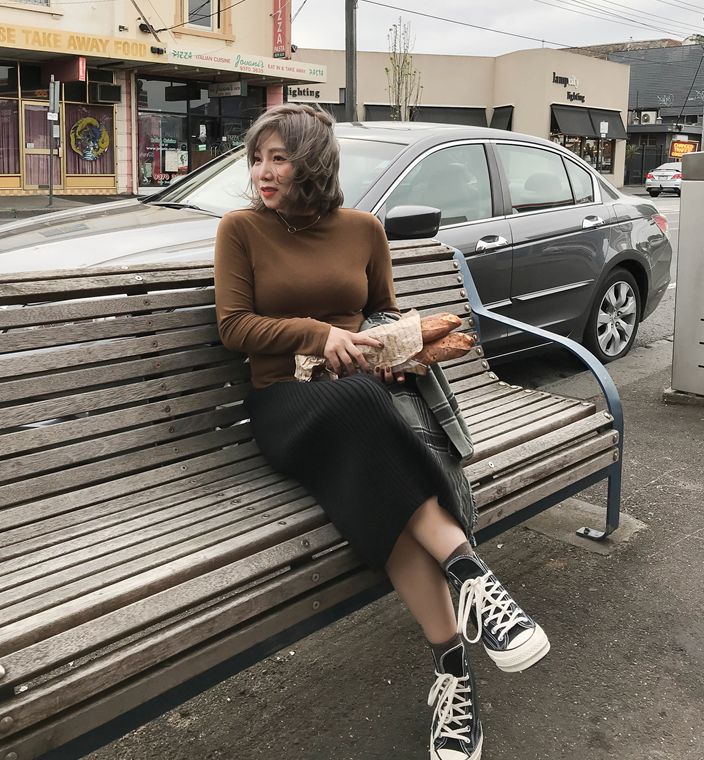 一套偏向韩系风格的搭配,外套、卫衣、半身裙、小白鞋,都是百搭的日常款单品,跟其他衣服搭配在一起也毫无压力。