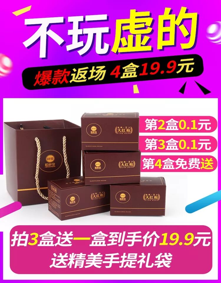 【拍3盒只要19.9元】武夷山大红袍,第二盒0.1元,第三盒0.1元,第四盒0元送,再送礼袋【一定要拍3盒。炒鸡划算。】源自福建武夷山原产大红袍,香气扑鼻,滋味醇厚,一定要拍3盒送1盒送礼袋,送礼佳品