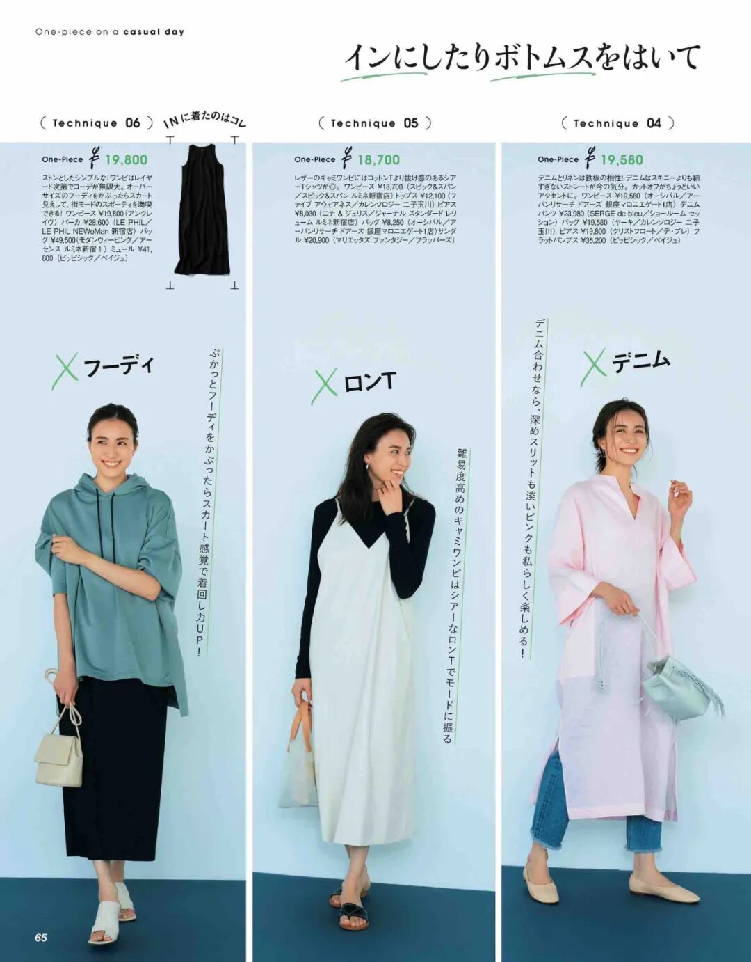 连衣裙 / URBAN RESEARCH DOORS / 19,580JPY牛仔裤 / showroom SESSION / 32,980JPY包包 / Curensology / 19,580JPY鞋 / vivisick / 35,200JPY(五)连衣裙 / Spick&Span / 18,700JPY上衣 / Curensology / 12,100JPY