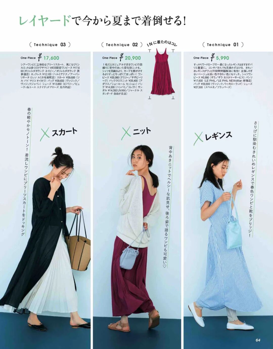 (二)连衣裙 / TOMORROWLAND / 16,500JPY包包 / Estnation / 13,420JPY鞋 / NEBULONI E, / 58,300JPY(三)连衣裙 / Ungrid /14,300JPY包包 / URBAN RESEARCH / 16,500JPY鞋 / NEBULONI E, / 48,400JPY想要学习更多日本穿搭美妆时尚知识,就扫描下方二维码关注我们吧!若有其他问题欢迎留言咨询!日本女子时尚MARU今后作为日本公司的我们会不断向大家介绍日本的年轻女性之间流行的时尚穿搭,美容医疗,美妆产品,以及在大阪很火的店铺(餐厅,服装店,配饰店)等等,感谢大家的关注哦~扫描二维码获取