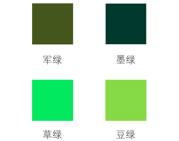 绿色里面也有区分,军绿、墨绿是比较基础的颜色,而草绿色、豆绿色等会比较出挑。
