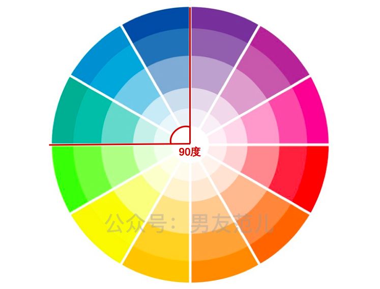 到了邻近色,就是12色相环上90度夹角以内了。