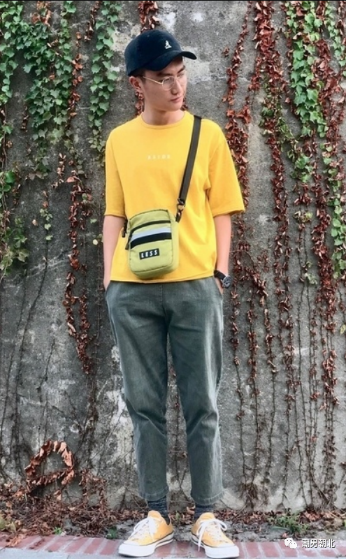 165cm左右的男生,要尽量避免别人的注意力集中在身高上,而是要衣服上吸引别人的眼球。黄色的中袖T恤就显得特别亮眼,特别帅气显年轻,再搭配军绿色的裤子,整体感觉潮流有范,最适合年轻男孩子了。