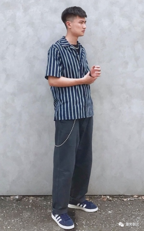 矮个子男生虽然身高不高,但是也可以通过假象来掩饰。比如说我们可以选择竖条纹的衬衫,然后再选择同色系的裤子,这样一来上下风格比较统一,就能让我们的身材在视觉上变得更加修长了。