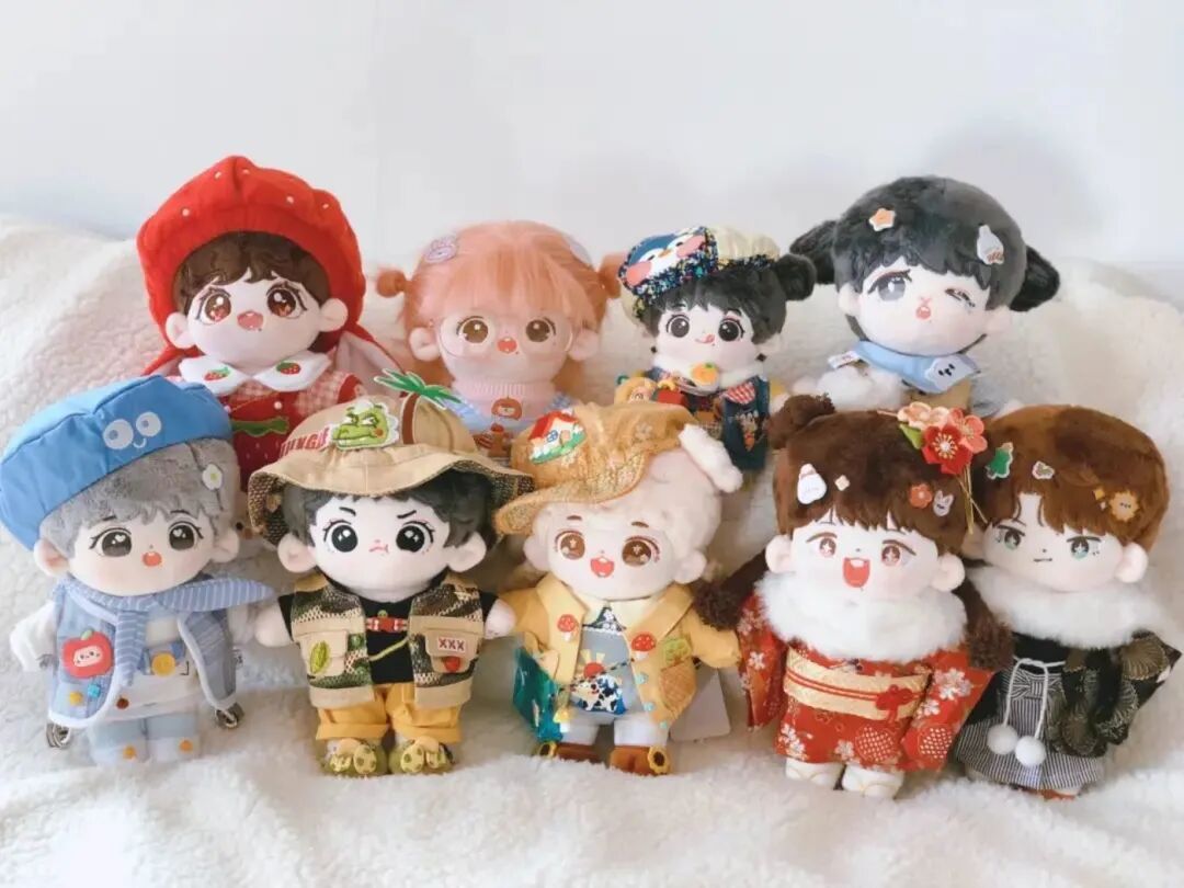 橙子,28岁,互联网从业者棉花娃娃是娃圈里比较大众的一种,与bjd(拥有球型关节的人偶)或者无属性(不以明星为原型制作)棉花娃娃不同,有属性的棉花娃娃更像是一种明星衍生周边,一般会有某个明星比较明显的脸部特征,多由粉丝组织制作售卖,购买者也基本都是粉丝。我“入坑”是因为喜欢的一对cp粉丝圈里有一个画手,她笔下的cp漫画形象非常可爱,经常画各种小剧场,受到很多粉丝的喜欢。后来这两个漫画形象被制作成棉花娃娃限时售卖。那是我买的第一对娃娃。当时这对娃娃非常火爆,开售的时候我和朋友提前蹲守,第一时间卡点进去才买到,买到后超级开心。入了第一对娃娃后,我逐渐地发现了更多可爱的娃娃,也关注了一些售卖娃衣的商店,他们上新的时候我基本都会购买。这些娃娃都很可爱,每只都有不同的发型、发色、表情,还可以自己搭配各种各样的衣服,出去逛街或者旅游的时候可以带出去拍照。