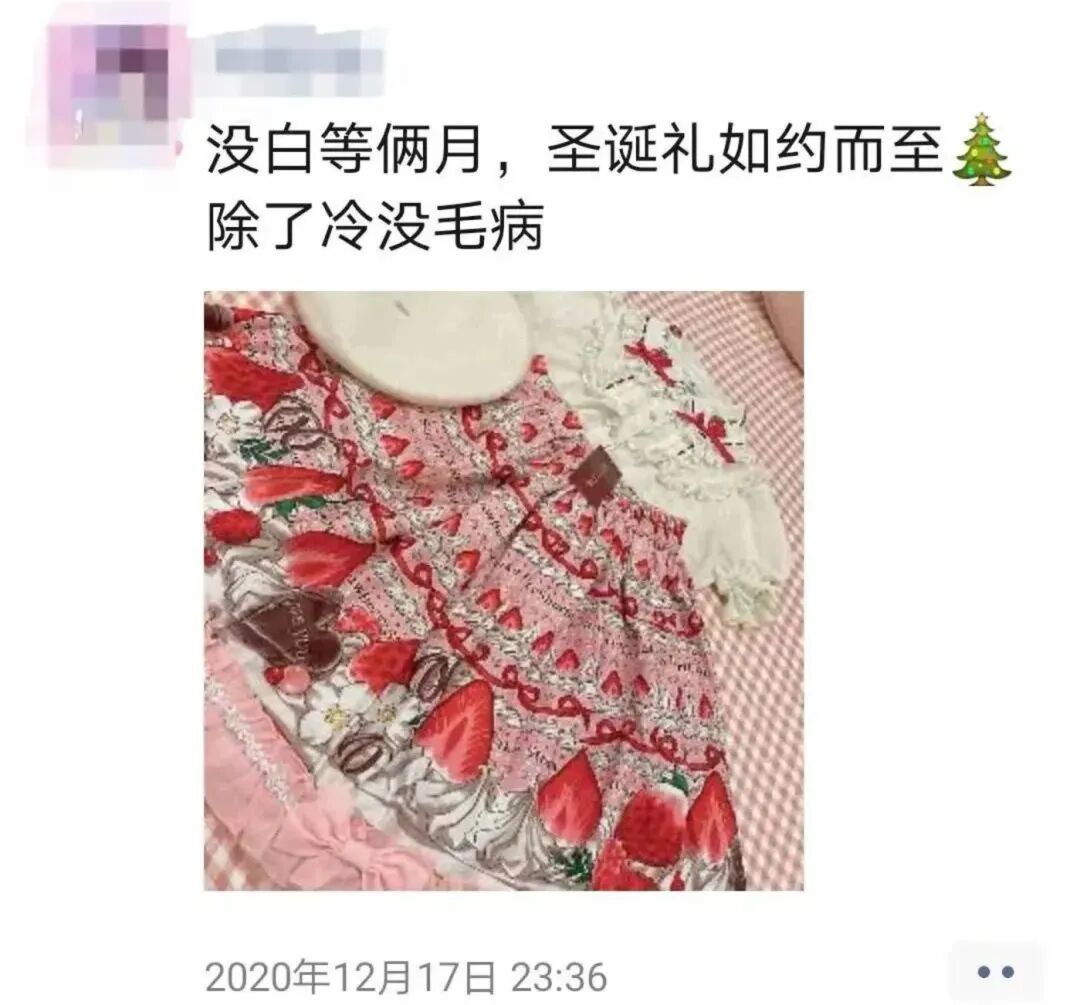来源 / 受访者供图入坑6年,其实我已经不像最开始那么狂热了,在微博上刷Lo圈动态的频次明显降低。随着年龄的增长,阅历的提升,我有了更多的爱好,精力也被Lo圈之外更多的事情所分散。但现在看到喜欢的Lo裙还是会买,去年考上研究生后,我就奖励自己买了一套近2000块的Lo裙。