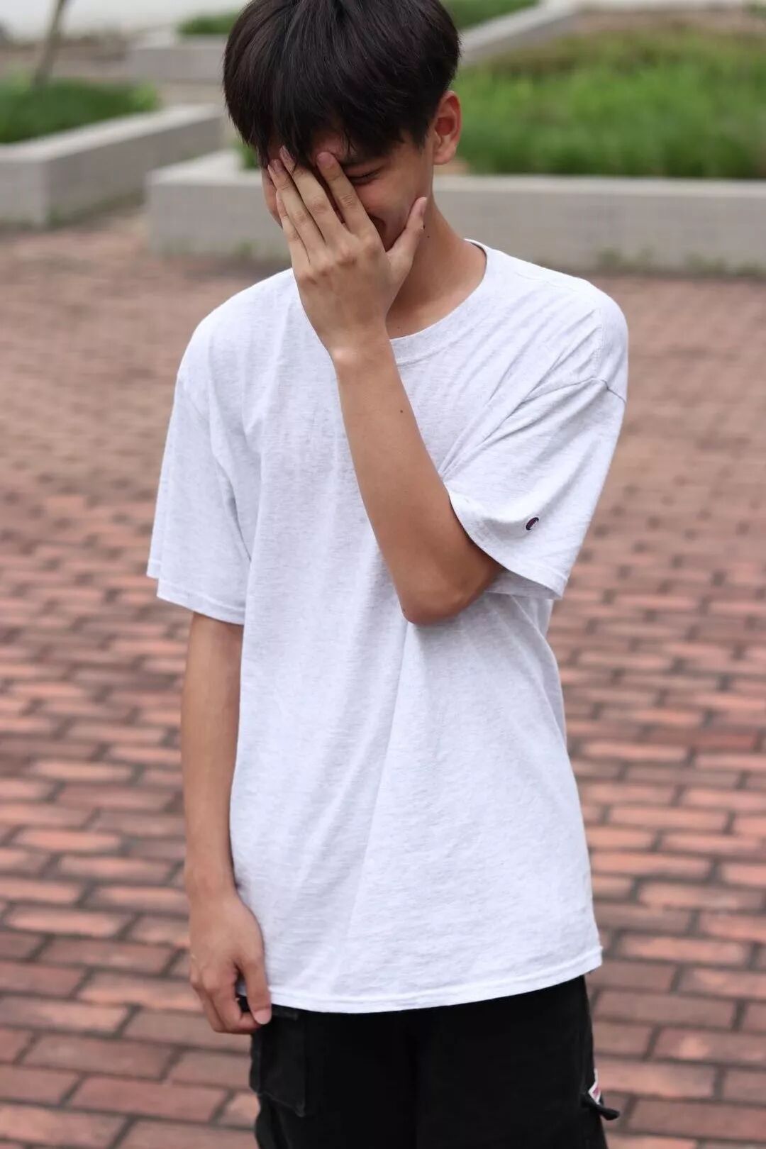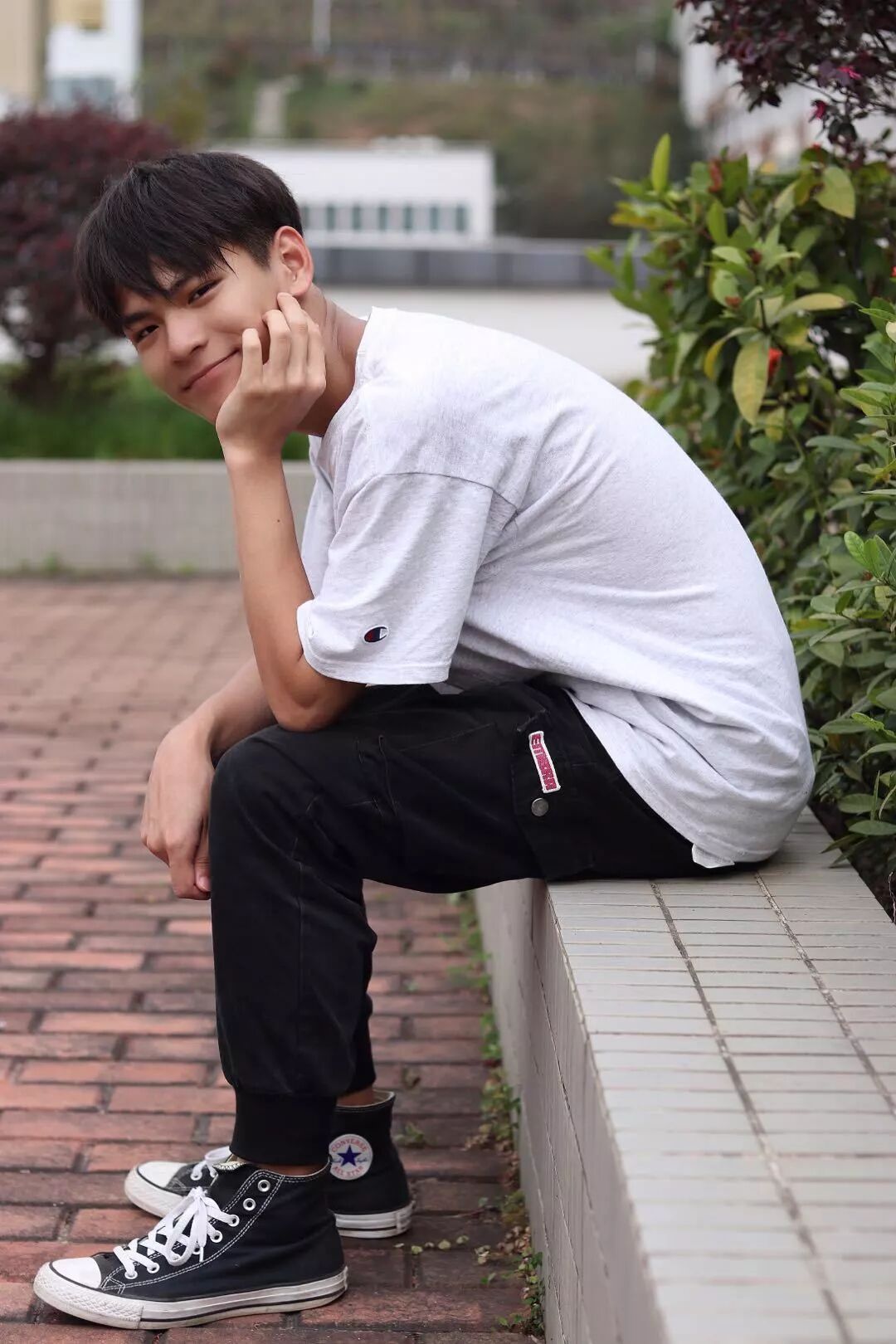ps:如果有女生像上图小哥哥这么穿(白衣+黑裤)的话,建议加个腰带噢~