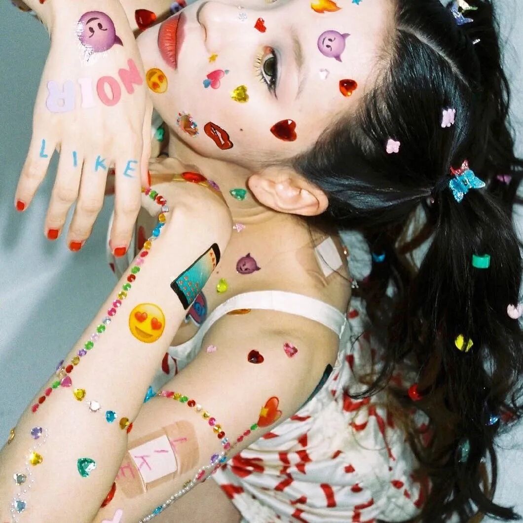 比如讽刺社交网络被滥用的《Noir》中,她那贴满全身的 emoji 贴纸,就掀起了一阵贴纸妆和贴纸 P 图潮流。