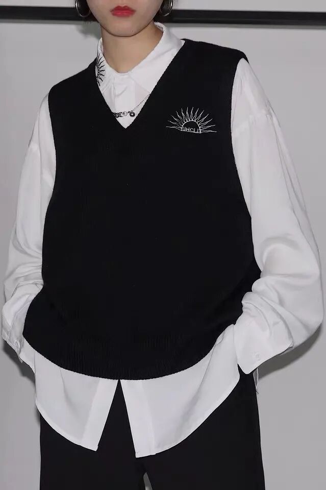 衬衣搭配针织马甲应该没人不爱吧,非常经典耐看的搭配方法,同时有一种学院感,学生党这样穿非常合适。