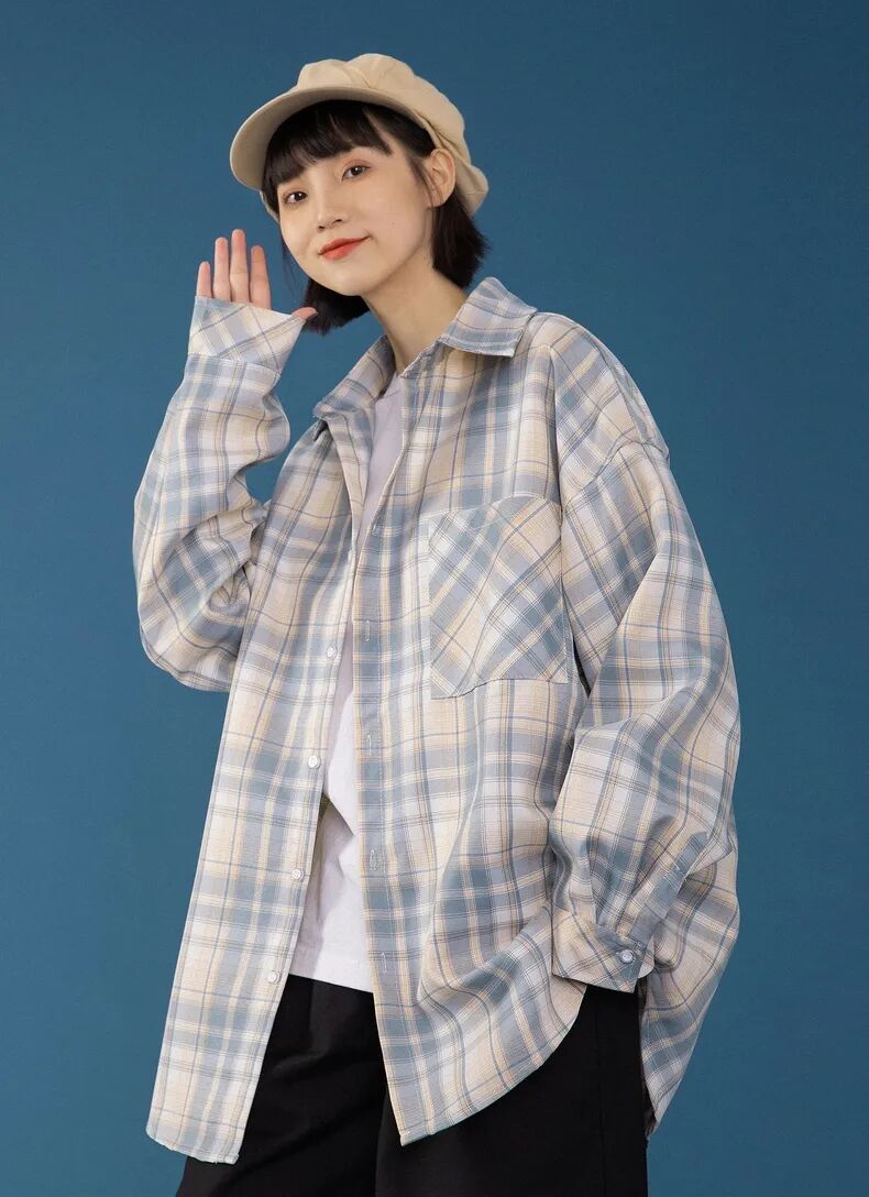 夏天的时候对调一下,格子衬衣配白T,既清爽又不失时髦感👇