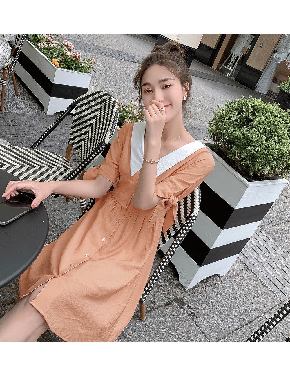 建议大家穿收腰连衣裙,或者A字裙