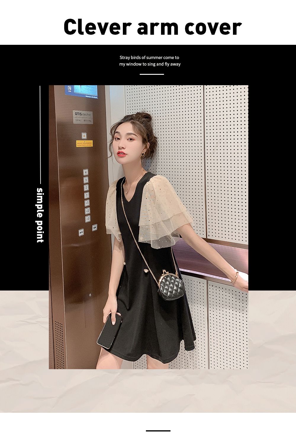 遮住手臂部分以减少肉感,增加淑女气息