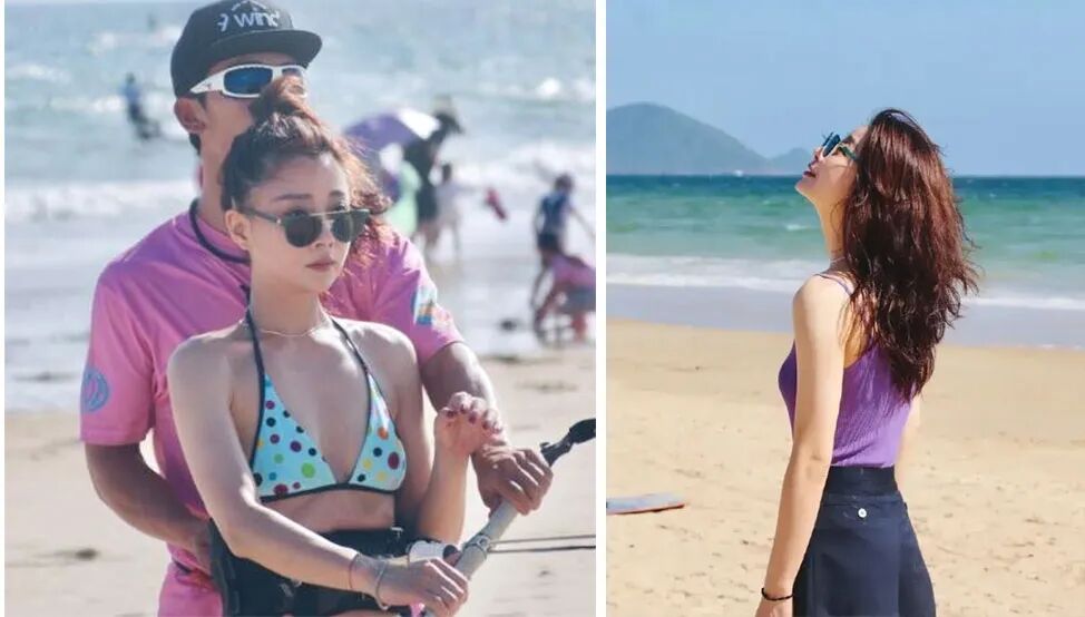 你看四十多岁还极具少女感的殷桃,去海边就算帽子不戴、防晒衣没穿,墨镜还不是乖乖焊在脸上。