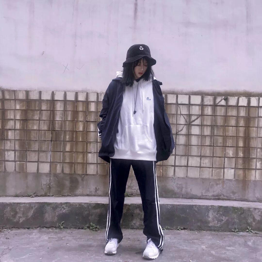 我一贯喜欢oversize。选择宽松的白色卫衣和复古套装,发型不满意时候可以选择渔夫帽进行搭配。鞋子选择了一双白色复古跑鞋,搭配白色卫衣。这一身搭配就以深蓝黑白为主了,很舒服很休闲的一身。日常搭配中也要多注意颜色的整体性、颜色的呼应。