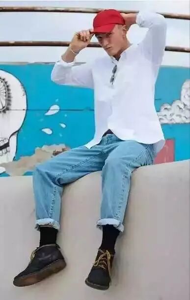 瘦高男在裤子的选择上尽量的选择稍微宽松但不过大的直筒裤,才能将你的腿型修饰得更饱满匀称。不要穿过于肥大的裤子。