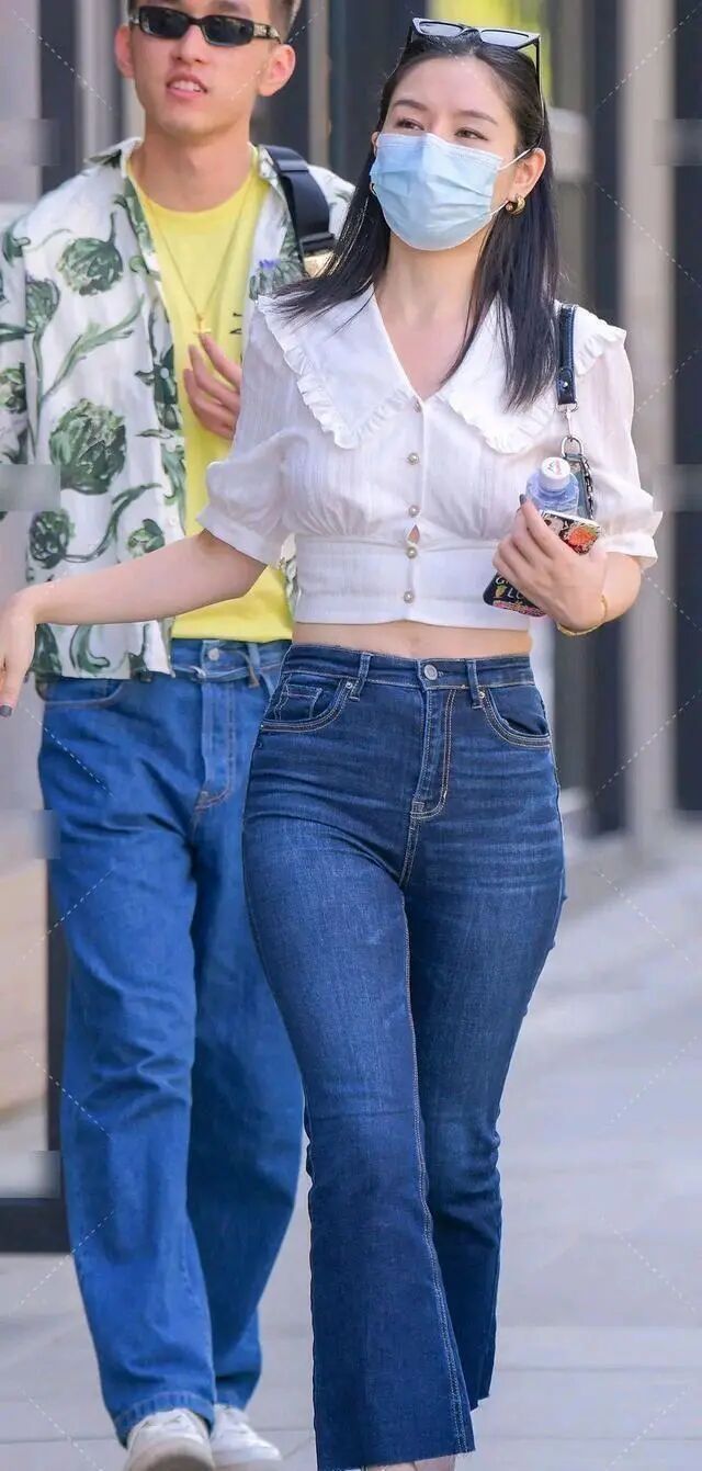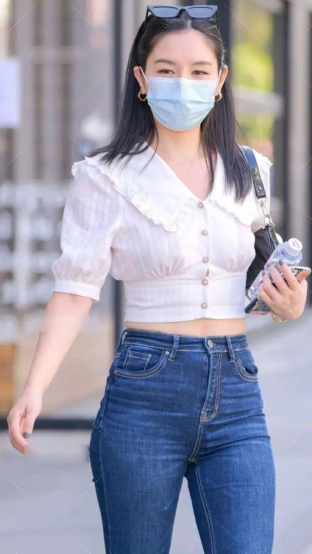 肤如凝脂的打底裤美女,搭配风格时尚一些,裁剪独特。