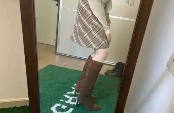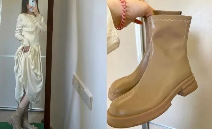 这双肤色的裸靴超级好搭配裙子,就那种秋冬丝绒奶油的穿搭风格,穿上它就立马有了氛围感!衣柜里闲置的各种连衣裙都可以拿出来搭配!