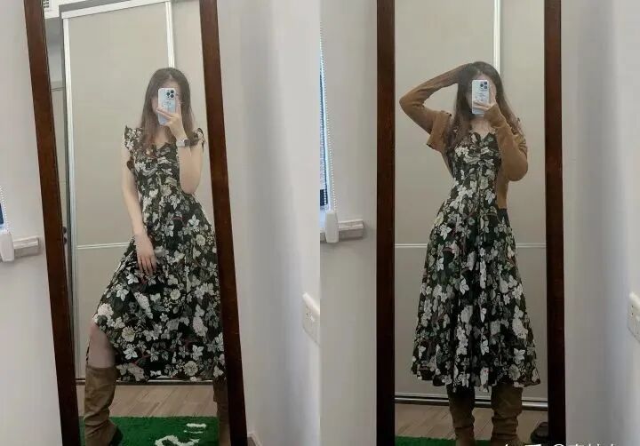 搭配:印花连衣裙➕毛衣➕西部靴/休闲卫衣➕百慕大短裤➕西部靴