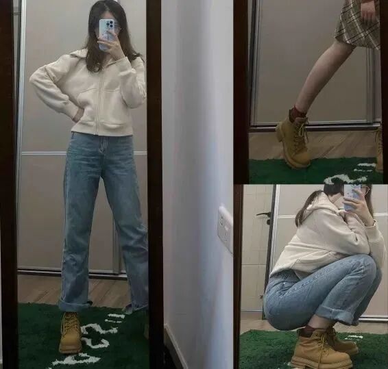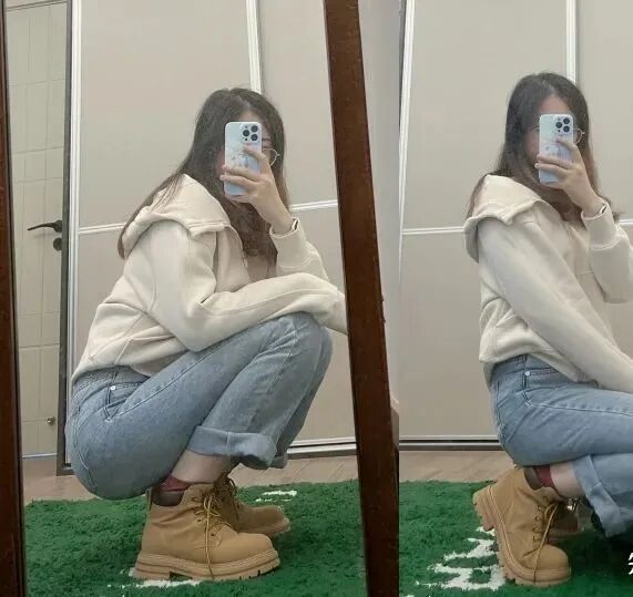 搭配:休闲卫衣➕牛仔裤➕大黄靴